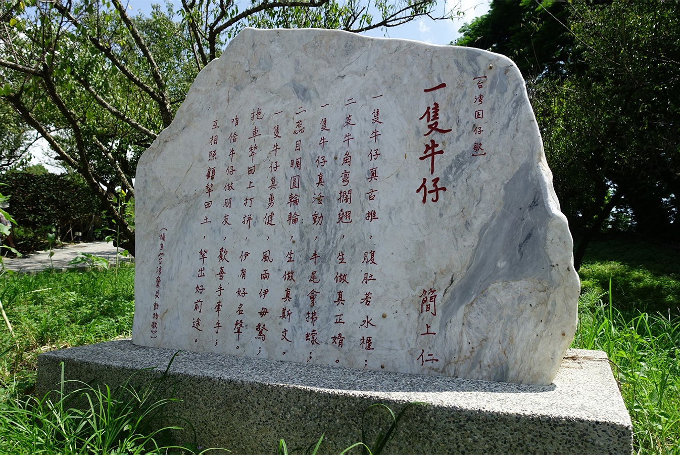 2014 創作兒歌[一隻牛仔]被刻上石頭佇立於梅山公園文學步道